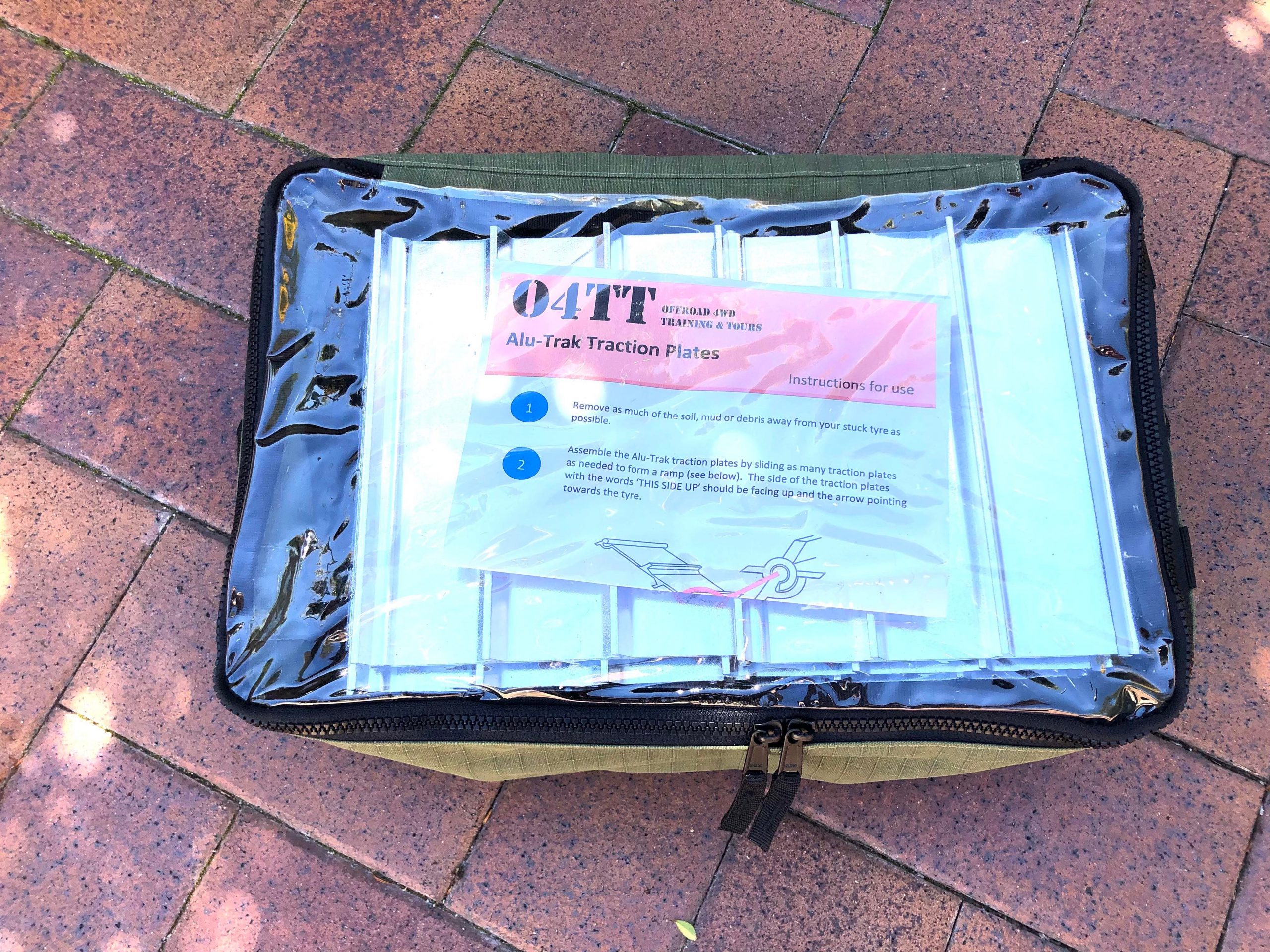Standard Alu-Trak Traction Board kit with six (6) modules with instructions in a canvas carry bag.  The bag is large enough to carry four (4) additional Alu-Trak modules.